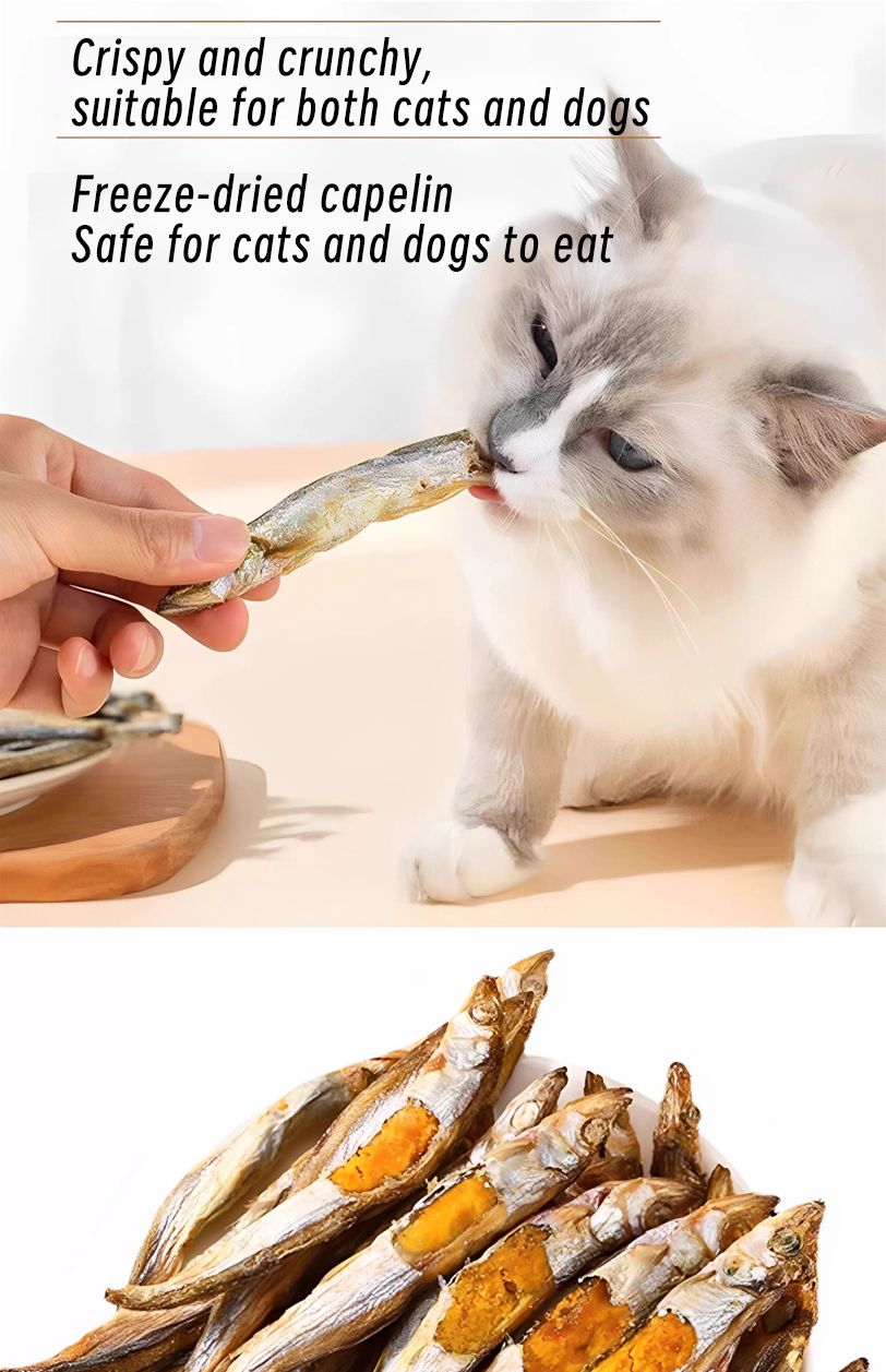 Freeze Dried Capelin Fish omega-3 fatty acids healthy skin, coat, and joint health.